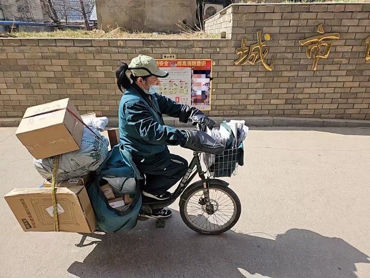 4月8日,沈陽一名快遞員在小區(qū)內送件。新華社記者 于也童 攝