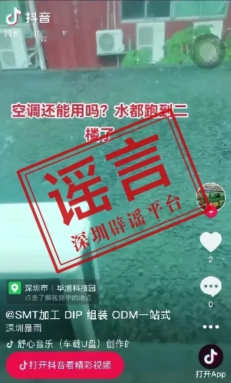 央視網(wǎng)消息:據(jù)“深圳網(wǎng)絡(luò)辟謠”微信公眾號(hào)消息,4月21日上午,有網(wǎng)帖稱深圳“寶安區(qū)華旭科技園由于雨水過大,二樓存在大量積水”,短視頻顯示的地點(diǎn)是“寶安區(qū)華旭科技園”。據(jù)向應(yīng)急部門核查了解,信息不實(shí),該科技園并沒有發(fā)生網(wǎng)帖所稱大量積水的情況。