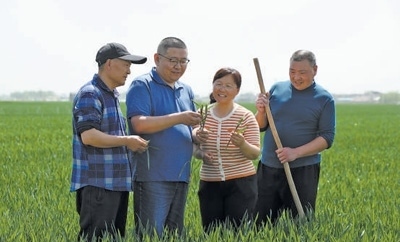 蘇丹(中)在指導村民進行小麥揚花期田間管理。本報記者 原韜雄攝