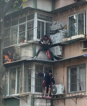 ·浙江寧波一小區(qū)陽臺(tái)起火,快遞小哥徒手爬3樓滅火。