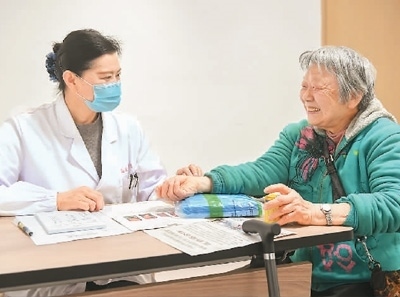 安徽省合肥市廬陽(yáng)區(qū)養(yǎng)老服務(wù)指導(dǎo)中心與安徽中醫(yī)藥大學(xué)門(mén)診部(國(guó)醫(yī)堂)醫(yī)聯(lián)體合作揭牌,該醫(yī)聯(lián)體開(kāi)設(shè)中醫(yī)科門(mén)診,助力老年群體樂(lè)享健康的晚年生活。圖為安徽中醫(yī)藥大學(xué)門(mén)診部(國(guó)醫(yī)堂)專家(左)為廬陽(yáng)區(qū)老年人義診治療。袁 兵攝(人民圖片)