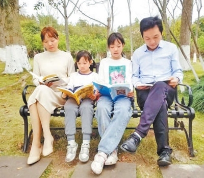 “開始看書啦!”晚上9點,陳靜做完家務,招呼丈夫賀瑋杰和兩個女兒到書架上各自取書,在客廳圍坐在一起,閱讀分享。這樣的親子時光,在重慶市榮昌區(qū)市民陳靜家已是尋常。兩個80后帶著兩個10后,每周一次家庭閱讀分享會,每年一份家庭心愿書單……一家人在書香中共同成長。