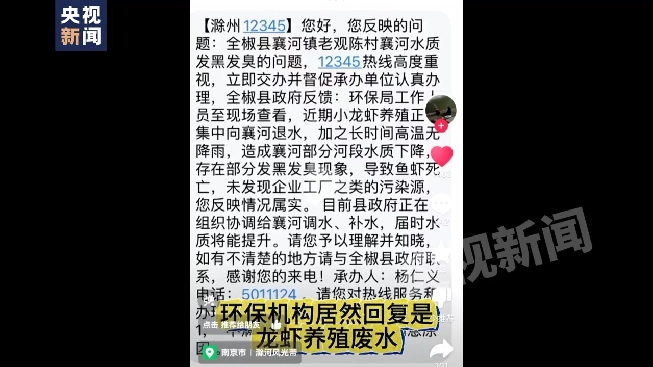 本次污染事件不僅造成滁河南京段大量魚蝦死亡,也導致全椒境內(nèi)養(yǎng)殖龍蝦大面積死亡,給養(yǎng)殖戶們帶來巨大損失。一些群眾通過滁州市12345反映,自稱沒有參與過問題處理的工作人員卻成了“承辦人”。