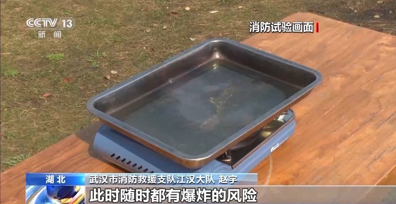 剛才我們看到的兩起事故都是卡式爐爆炸引起的??ㄊ綘t是以瓶裝丁烷氣為主要燃料,用火進行直接加熱的非固定式烹飪廚具。在露營中,很多人選擇攜帶卡式爐進行烹飪,那么,什么情況下卡式爐可能會發(fā)生爆炸?使用過程中要注意哪些問題?消防人員通過試驗來給我們做了演示和講解。