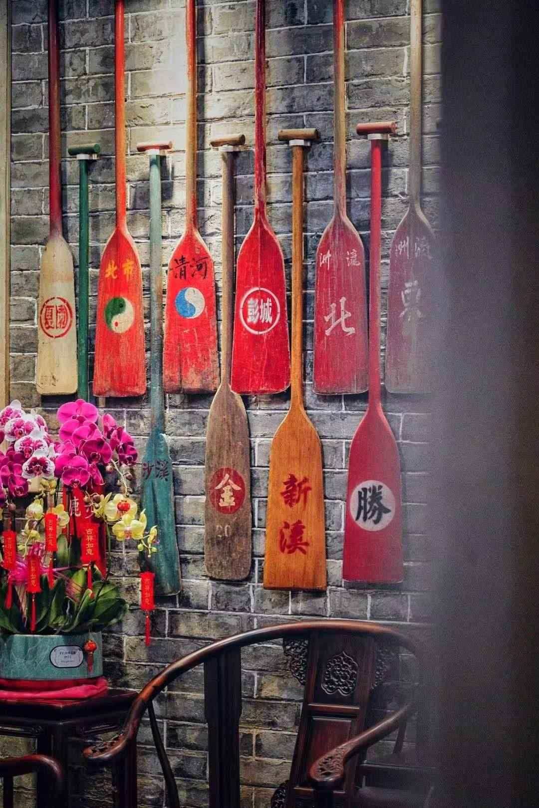 在張偉潮工作室的青磚墻上掛滿了劃龍舟所用的船槳?!皝?lái)取龍頭的人大多會(huì)送一面錦旗,我說不要錦旗,可以把你們不用的槳送給我?!边@些年張偉潮陸續(xù)收到了300多支船槳,在他看來(lái),每一把槳都蘊(yùn)含著自己隊(duì)伍、村落的故事,每一把都是獨(dú)一無(wú)二的,他要把船槳當(dāng)作錦旗一樣高高地掛在墻上。