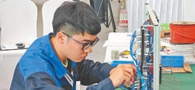 手持記號筆,目光如炬,只見軌道信號控制技術(shù)項(xiàng)目選手陳權(quán)(見圖,本報(bào)記者蔣雨師攝)在電路圖里精準(zhǔn)鎖定電路,將一個個接點(diǎn)逐一填入配線表,動作行云流水,一氣呵成。在大賽現(xiàn)場,軌道信號控制技術(shù)項(xiàng)目選手需要完成軌道信號設(shè)備的設(shè)計(jì)、施工、調(diào)試與檢修工作。就設(shè)計(jì)環(huán)節(jié)而言,選手們需要把上百條電路信號的轉(zhuǎn)轍機(jī)電路設(shè)計(jì)圖轉(zhuǎn)換為電路配線表,但凡有一個接點(diǎn)錯誤,整個電路都將出現(xiàn)問題,而這一環(huán)節(jié),陳權(quán)只花了10分鐘。