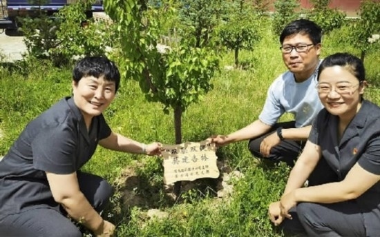 山西高院訴訟服務(wù)中心黨員干警在清水溝村種下一棵棵杏樹,同筑美麗鄉(xiāng)村。