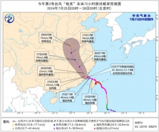 今年第3號(hào)臺(tái)風(fēng)“格美”未來(lái)72小時(shí)路徑概率預(yù)報(bào)圖(7月25日05時(shí)-28日05時(shí))