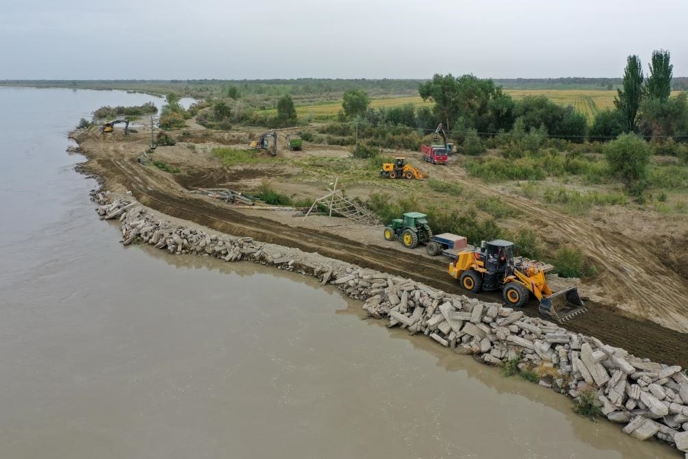 “這一區(qū)域是‘幾’字形的回水灣,距離最近的農(nóng)田不足50米?!鄙w孜庫木鄉(xiāng)黨委書記艾力江·阿布來提說,為確保群眾生命財(cái)產(chǎn)安全,當(dāng)?shù)剜l(xiāng)村兩級干部和黨員共230人組成7支搶險(xiǎn)隊(duì),輪流值守防汛一線,并投入35輛大型機(jī)械進(jìn)行堤壩除險(xiǎn)加固。