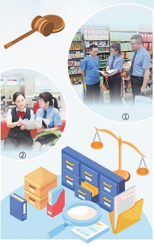 圖①:郯城縣檢察院檢察官在向當事人核實了解情況。顧嘉豪攝 圖②:蘭山區(qū)檢察院檢察官在向銀行工作人員取證。李春晨攝