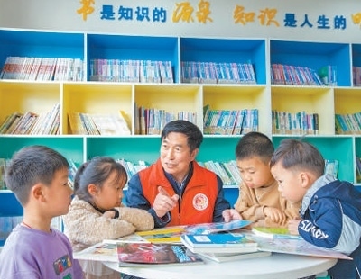 滋潤(rùn)人心江蘇省海安市聘請(qǐng)鄉(xiāng)村閱讀火炬手,營(yíng)造鄉(xiāng)村閱讀氛圍,引領(lǐng)鄉(xiāng)風(fēng)文明建設(shè)。圖為鄉(xiāng)村閱讀火炬手在海安高新區(qū)鳳山村農(nóng)家書屋帶領(lǐng)孩子們閱讀。翟慧勇攝(人民視覺(jué))