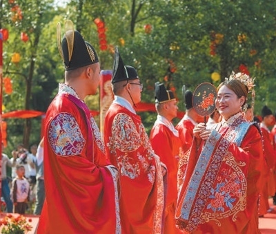 德化人心安徽省蕪湖市南陵縣家發(fā)鎮(zhèn)聯(lián)三村舉行集體婚禮,倡導(dǎo)婚事新辦、儉辦的文明新風(fēng)尚。肖本祥攝(人民視覺(jué))