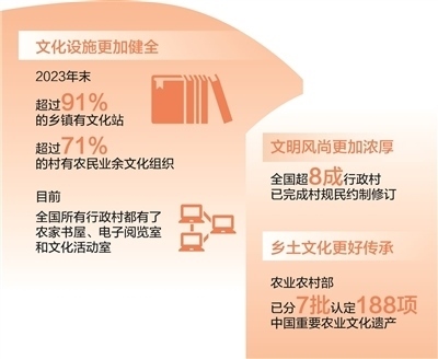 新時(shí)代以來(lái),各地區(qū)各部門深入推進(jìn)農(nóng)村精神文明建設(shè)。加快完善鄉(xiāng)村文化設(shè)施,健全農(nóng)村公共文化體系,農(nóng)家書屋、鄉(xiāng)村文化禮堂等打通文化惠民“最后一公里”;發(fā)展群眾性文體活動(dòng),廣泛開展“村BA”“村超”“村晚”等,豐富鄉(xiāng)村精神文化生活,展現(xiàn)鄉(xiāng)親們積極向上的精氣神;培育挖掘鄉(xiāng)土文化人才,引導(dǎo)文化工作者、科普工作者、文化志愿者等投身鄉(xiāng)村文化建設(shè);賡續(xù)鄉(xiāng)村優(yōu)秀傳統(tǒng)文化,把對(duì)非遺的保護(hù)傳承和開發(fā)利用有機(jī)結(jié)合,將藝術(shù)與古村落、古民居的活化利用有機(jī)結(jié)合;持續(xù)推進(jìn)農(nóng)村移風(fēng)易俗,革除高價(jià)彩禮、人情攀比、厚葬薄養(yǎng)、鋪張浪費(fèi)等陳規(guī)陋習(xí),反對(duì)迷信活動(dòng),推動(dòng)形成文明鄉(xiāng)風(fēng)、良好家風(fēng)、淳樸民風(fēng);健全鄉(xiāng)村治理體系,有效發(fā)揮村規(guī)民約作用,推廣文明積分等方式,激勵(lì)農(nóng)民自覺(jué)踐行文明新風(fēng)……這些舉措為加強(qiáng)農(nóng)村精神文明建設(shè)提供了有力抓手,推動(dòng)現(xiàn)代文明理念融入鄉(xiāng)村生活方方面面,為推進(jìn)鄉(xiāng)村全面振興注入新動(dòng)能。