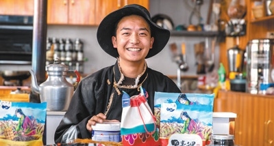 四川省甘孜藏族自治州甲洼鎮(zhèn),當(dāng)?shù)厍嗄暝谡故局辈ナ圪u的商品。越來越多年輕人扎根家鄉(xiāng),為川藏公路沿線發(fā)展注入活力。