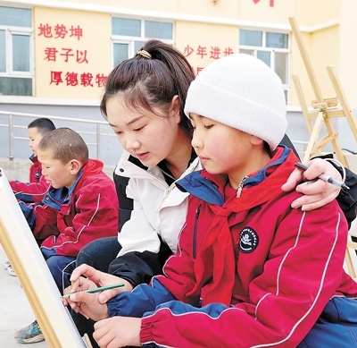 2023年,高潮從山西大同大學美術(shù)學院畢業(yè)前,看到了西部計劃的招募信息?!耙ツ敲催h的地方當老師嗎?”高潮有點猶豫。她小時候在鄉(xiāng)村小學讀書,因為老師少,很多課程都開展不起來,“想到自己小時候的經(jīng)歷,我下定了決心?!?/p>