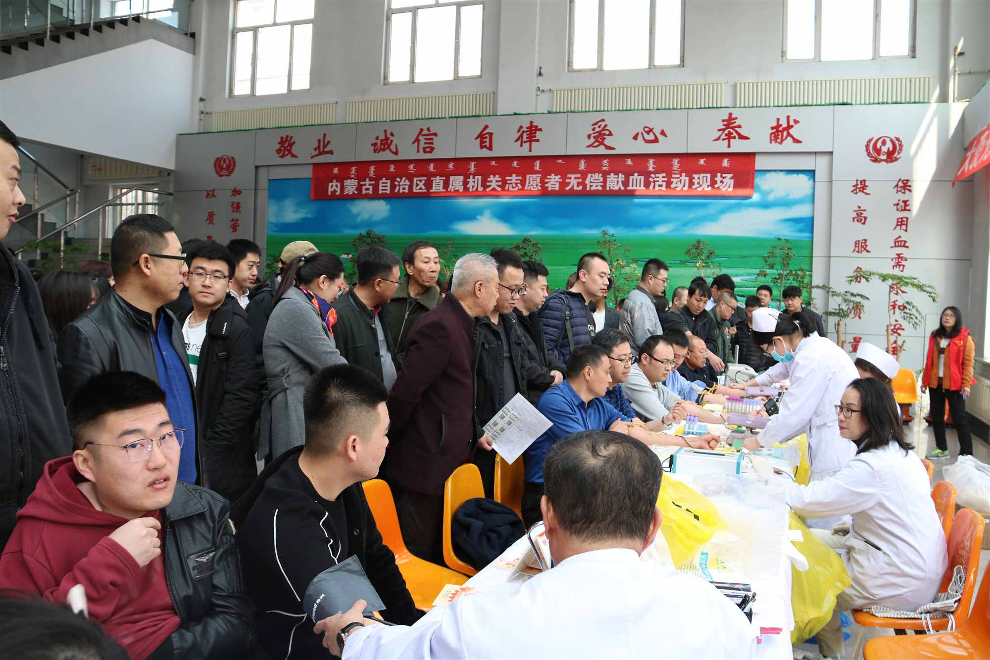 活動中,自治區(qū)直屬機關(guān)工委組織區(qū)直機關(guān)80余家單位800多人積極參加了無償獻血活動,其中457人成功獻血15.31萬毫升,區(qū)直機關(guān)140余名志愿者開展了應(yīng)急救護培訓(xùn)。