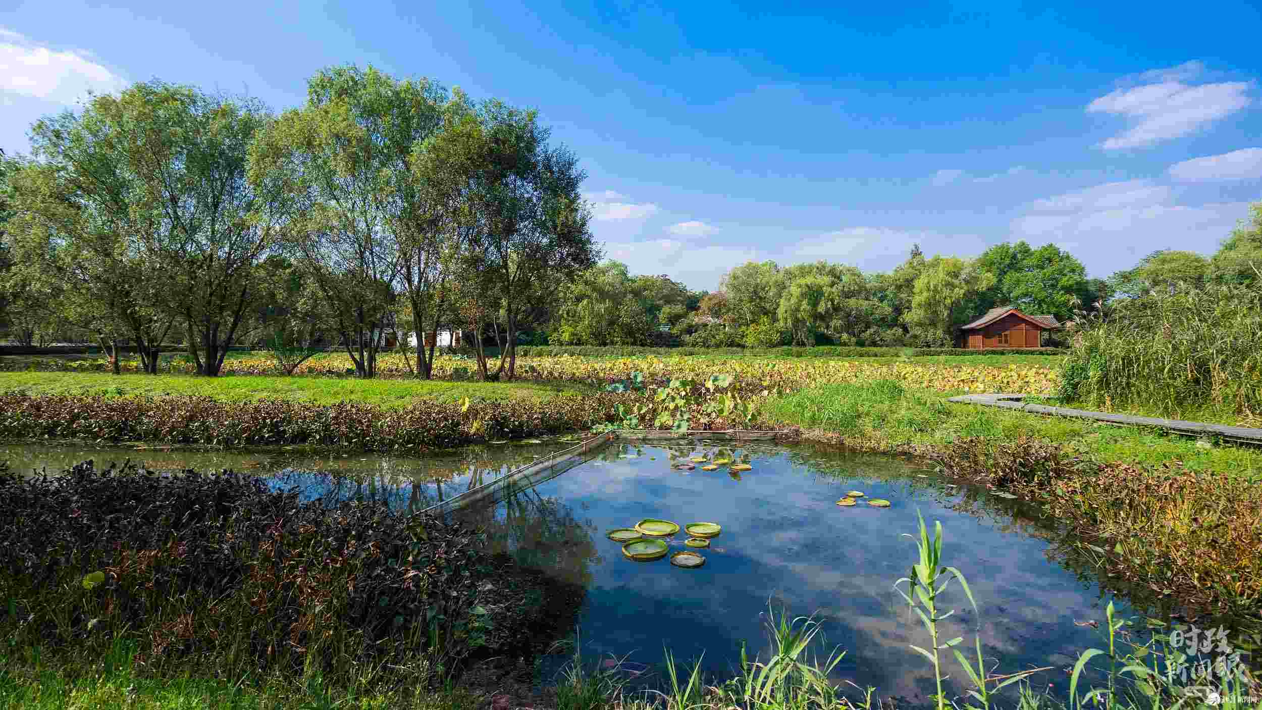△西溪濕地內(nèi)約68%面積為河港、池塘、湖漾、沼澤等水域,水體庫容量約500萬立方米,有“萬塘攬勝”之稱。(總臺央視記者鐘銳、李輝拍攝)