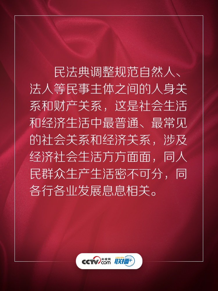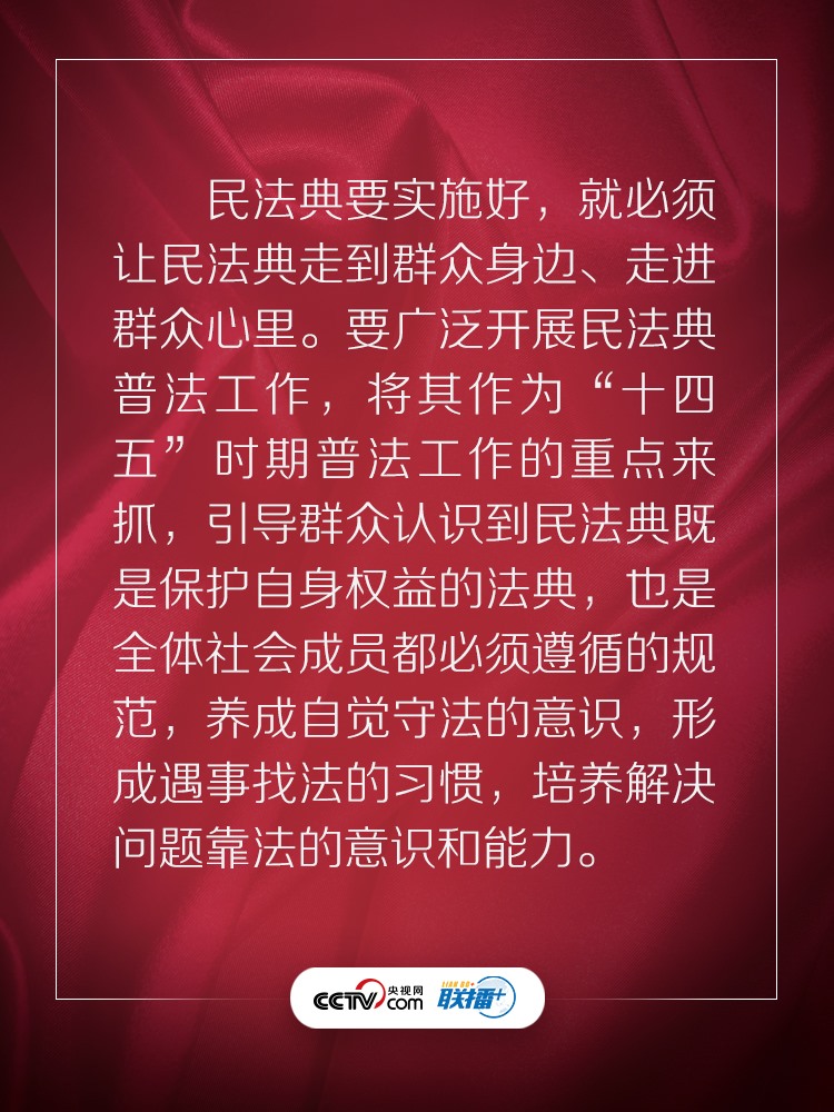 民法典回應了人民的期待,充滿了以人民為中心的底色。央視網(wǎng)《聯(lián)播+》特梳理習近平總書記相關話語,與您一起學習感悟。