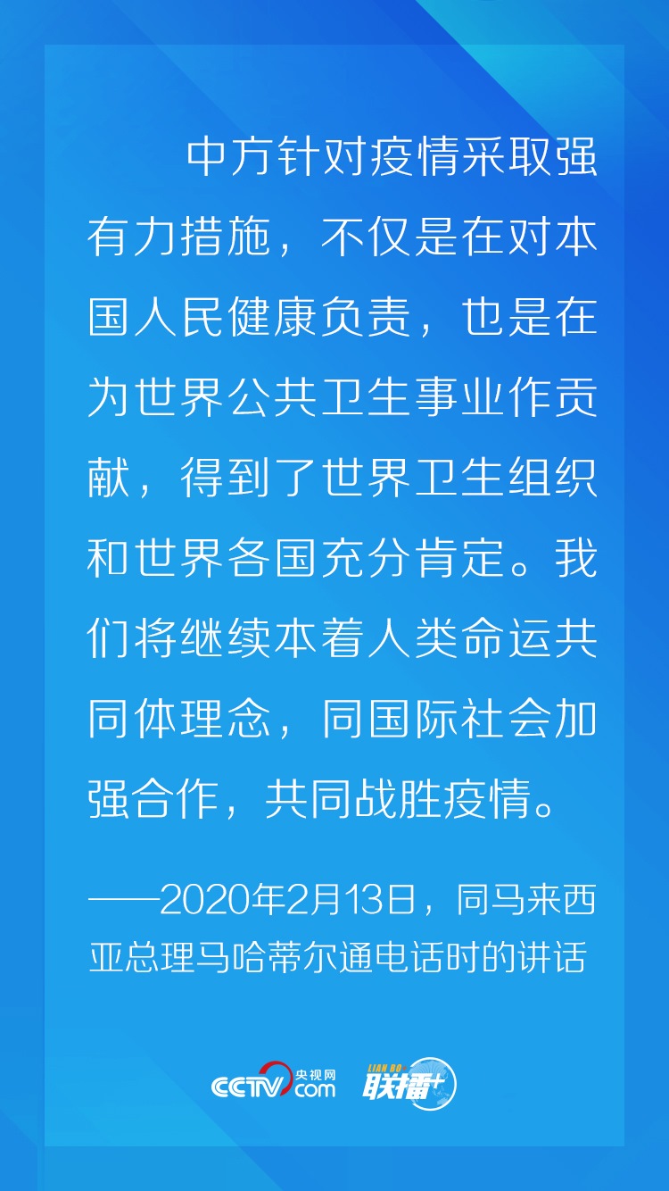 新冠肺炎疫情發(fā)生以來,習(xí)近平主席始終堅持人民至上理念,在統(tǒng)籌做好本國疫情防控和經(jīng)濟社會發(fā)展工作的同時,頻繁與多個國家領(lǐng)導(dǎo)人及國際組織負(fù)責(zé)人保持電話、書信、視頻會議為主渠道的“云外交”溝通,處處體現(xiàn)著習(xí)近平主席以人民為中心的發(fā)展思想。