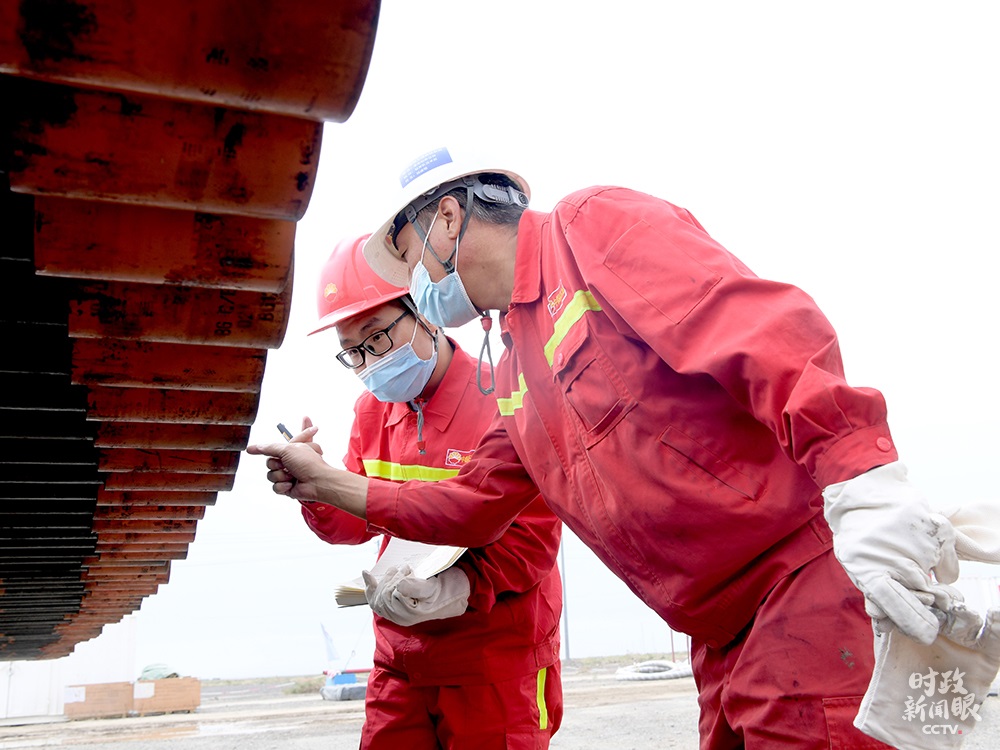 △中國石油大學(xué)(北京)克拉瑪依校區(qū)2020屆畢業(yè)生王首都(左)在克拉瑪依鉆井一線工作。