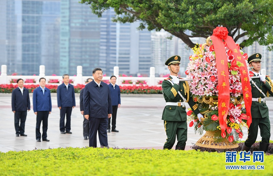 10月14日,深圳經濟特區(qū)建立40周年慶祝大會在廣東省深圳市隆重舉行。中共中央總書記、國家主席、中央軍委主席習近平在會上發(fā)表重要講話。這是當天下午,習近平來到蓮花山公園,向鄧小平同志銅像敬獻花籃。 新華社記者 李響 攝