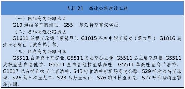 基礎(chǔ)設(shè)施保障更加有力。交通運輸、能源外送通道和引調(diào)水骨干工程接續(xù)落地。綜合交通運輸體系基本形成,接入全國高鐵網(wǎng),呼和浩特至張家口高速鐵路,通遼、赤峰至京沈高速鐵路連接線,浩勒報吉至吉安鐵路順利建成,建成高速鐵路404公里。全區(qū)103個旗縣(市區(qū))全部通高等級公路,京新高速臨河至哈密、丹錫高速錫林浩特至巴林右旗等高速公路通車運營,所有鄉(xiāng)鎮(zhèn)(蘇木)和具備條件的建制村通硬化路,建成“四好農(nóng)村路”6.6萬公里,綜合交通網(wǎng)總里程達到22.5萬公里。呼和浩特新機場開工建設(shè),呼倫貝爾、包頭、通遼等機場完成改擴建。新建通用機場15個,民用機場達到40個。黃河內(nèi)蒙古段二期防洪、引綽濟遼、東臺子水庫等重大水利工程建設(shè)順利推進。全區(qū)5G基站突破1萬個。建成5條特高壓外送電通道??耸部蓑v至北京煤制氣管道投入運營。呼和浩特地鐵1、2號線一期工程建成運營。