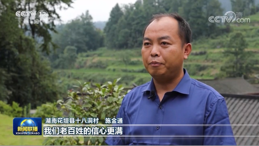 湖南花垣縣十八洞村施金通:我們老百姓的信心更滿,干勁更足,對以后發(fā)展的憧憬更有信心?! ?/p>
