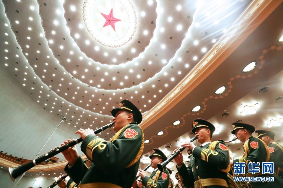 3月5日,第十三屆全國人民代表大會(huì)第四次會(huì)議在北京人民大會(huì)堂開幕。這是軍樂團(tuán)在演奏。新華社記者 金良快 攝