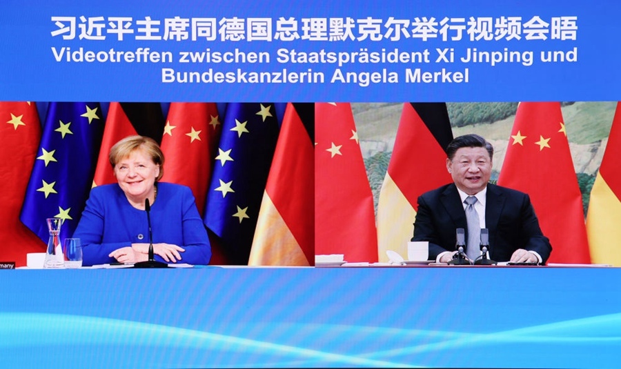 這是一次特殊的會晤。已擔(dān)任德國總理16年的默克爾,不久后將卸任。她原計(jì)劃再度訪華。由于疫情,兩位領(lǐng)導(dǎo)人商定,以視頻會晤的方式再度會面。