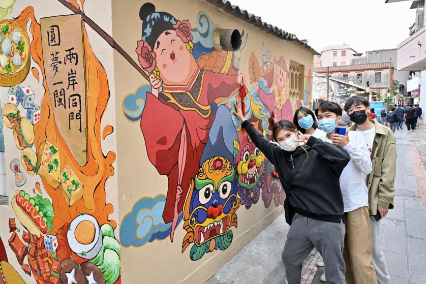 2021年12月10日,2021海峽論壇第三屆創(chuàng)意涂鴉大獎(jiǎng)賽的參賽者與作品合影。新華社記者 姜克紅 攝