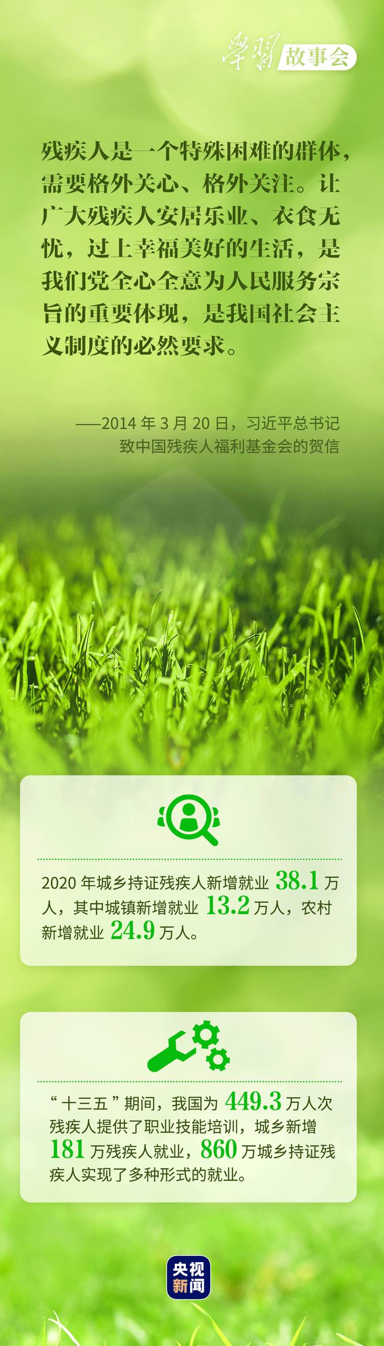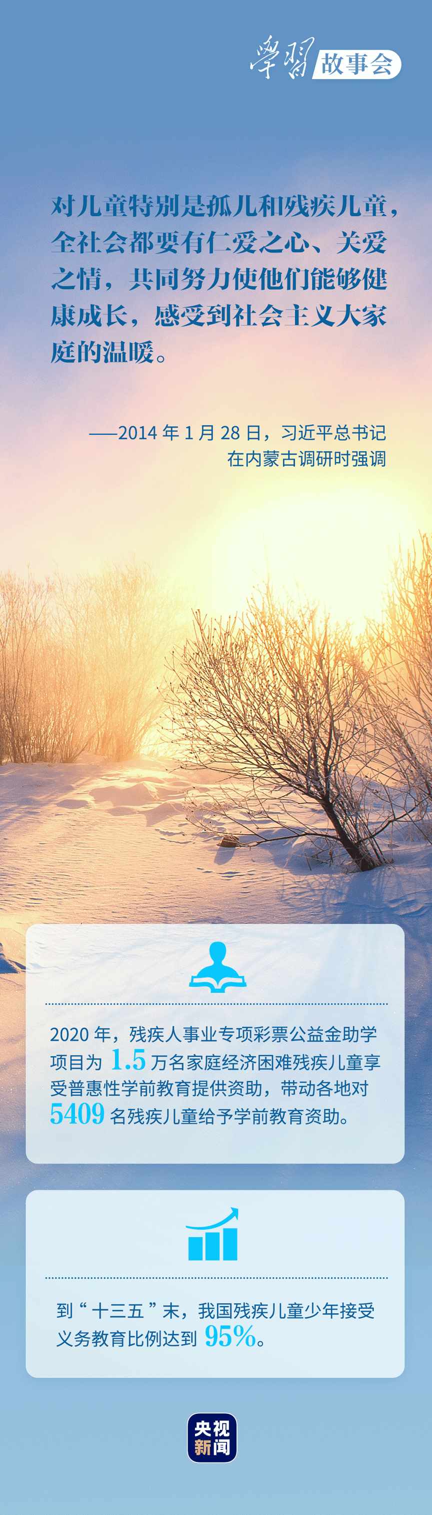 考察河北唐山市截癱療養(yǎng)院,看望呼和浩特市兒童福利院的孤殘兒童,會(huì)見殘疾人群體代表.....無(wú)論春夏秋冬,總書記對(duì)殘疾人群體的殷殷關(guān)懷溫潤(rùn)心田。