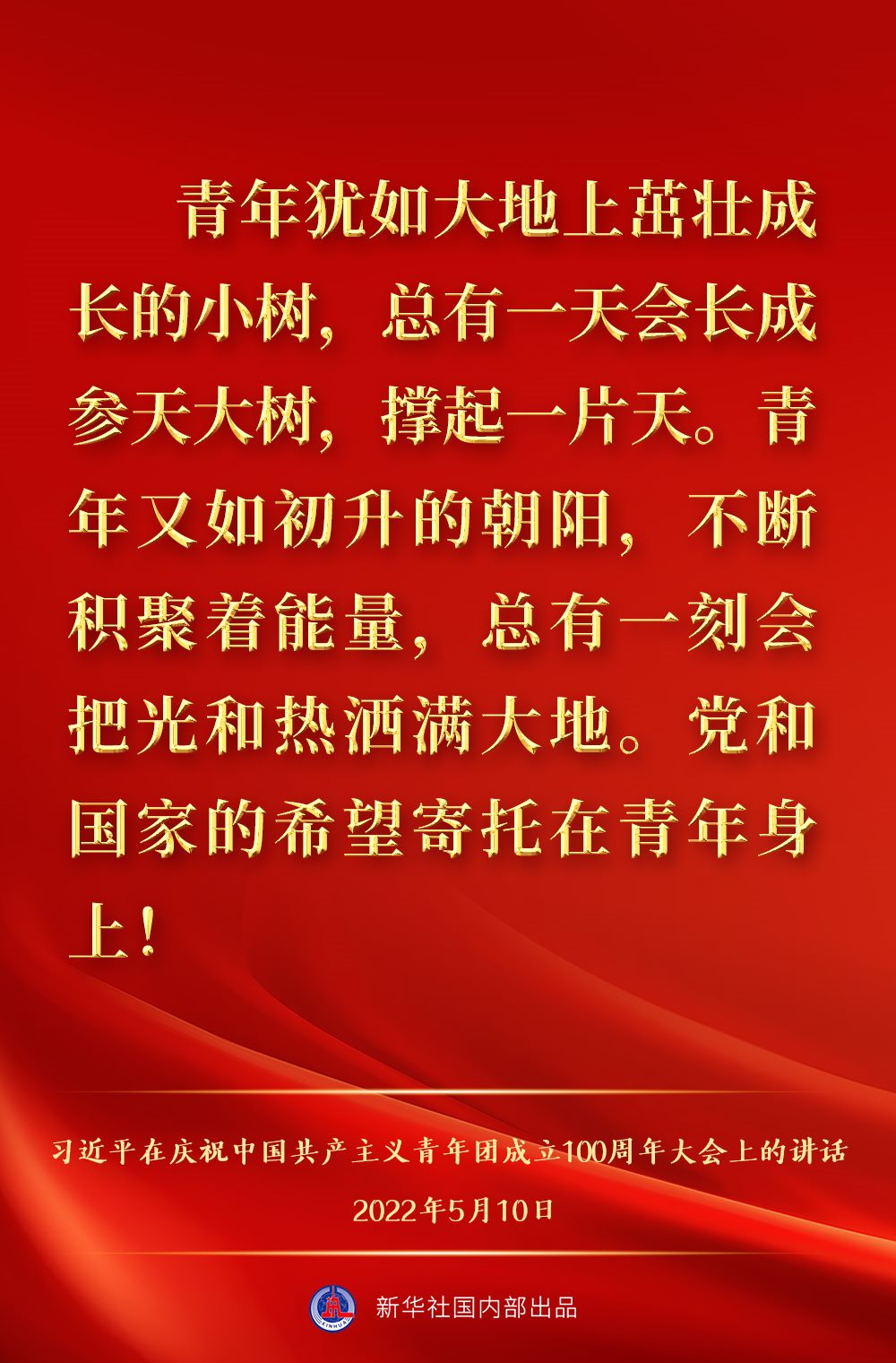 5月10日上午,中共中央總書記、國家主席、中央軍委主席習近平出席慶祝中國共產(chǎn)主義青年團成立100周年大會并發(fā)表重要講話,一起來看金句。