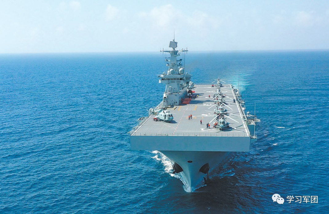 檢驗成果那天,多批多架次艦載直升機從海南艦甲板上騰空而起,標志著海南艦初步形成垂直投送能力。