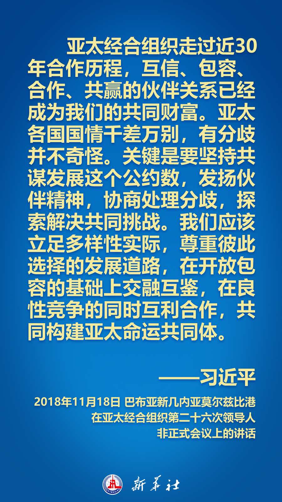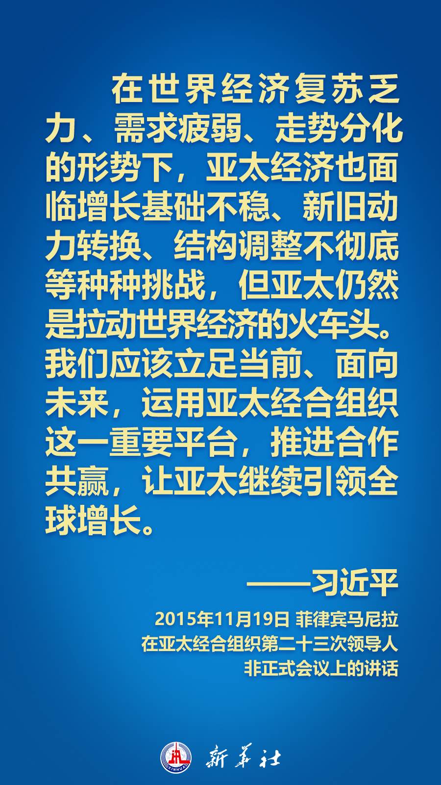 在以往的亞太經(jīng)合組織領(lǐng)導(dǎo)人非正式會議上,習(xí)近平主席多次闡述構(gòu)建開放包容、創(chuàng)新增長、互聯(lián)互通、合作共贏的亞太命運共同體的理念主張和重大意義,為亞太乃至全球經(jīng)濟(jì)發(fā)展指明方向,注入強(qiáng)勁動力。