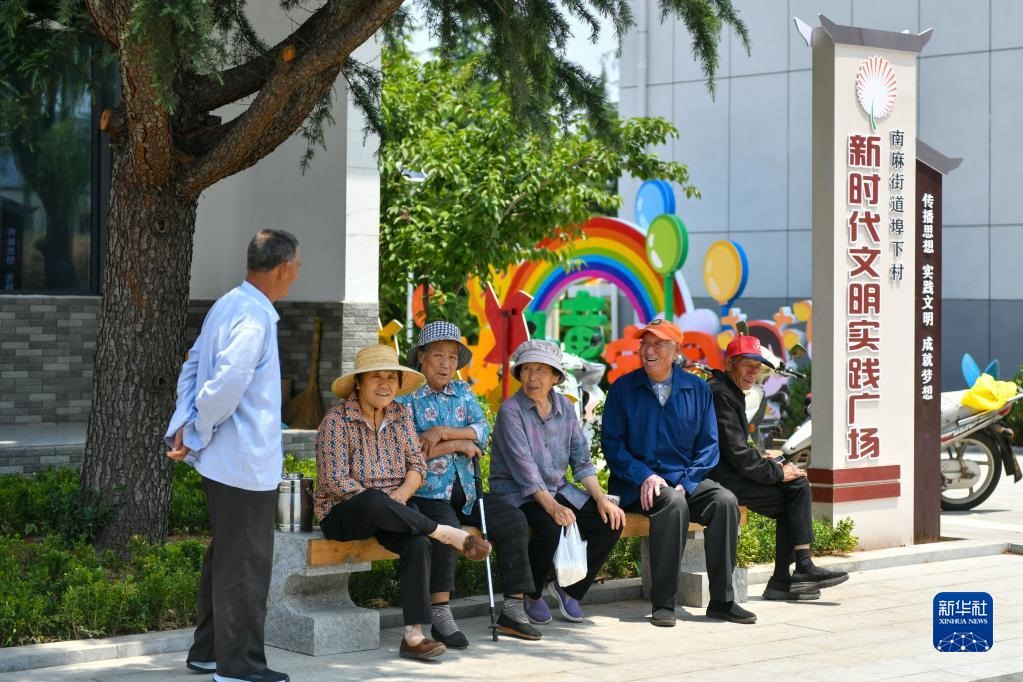 山東省沂源縣南麻街道埠下村村民在民生綜合體活動(dòng)廣場休息(2022年6月15日攝)。新華社記者 朱崢 攝