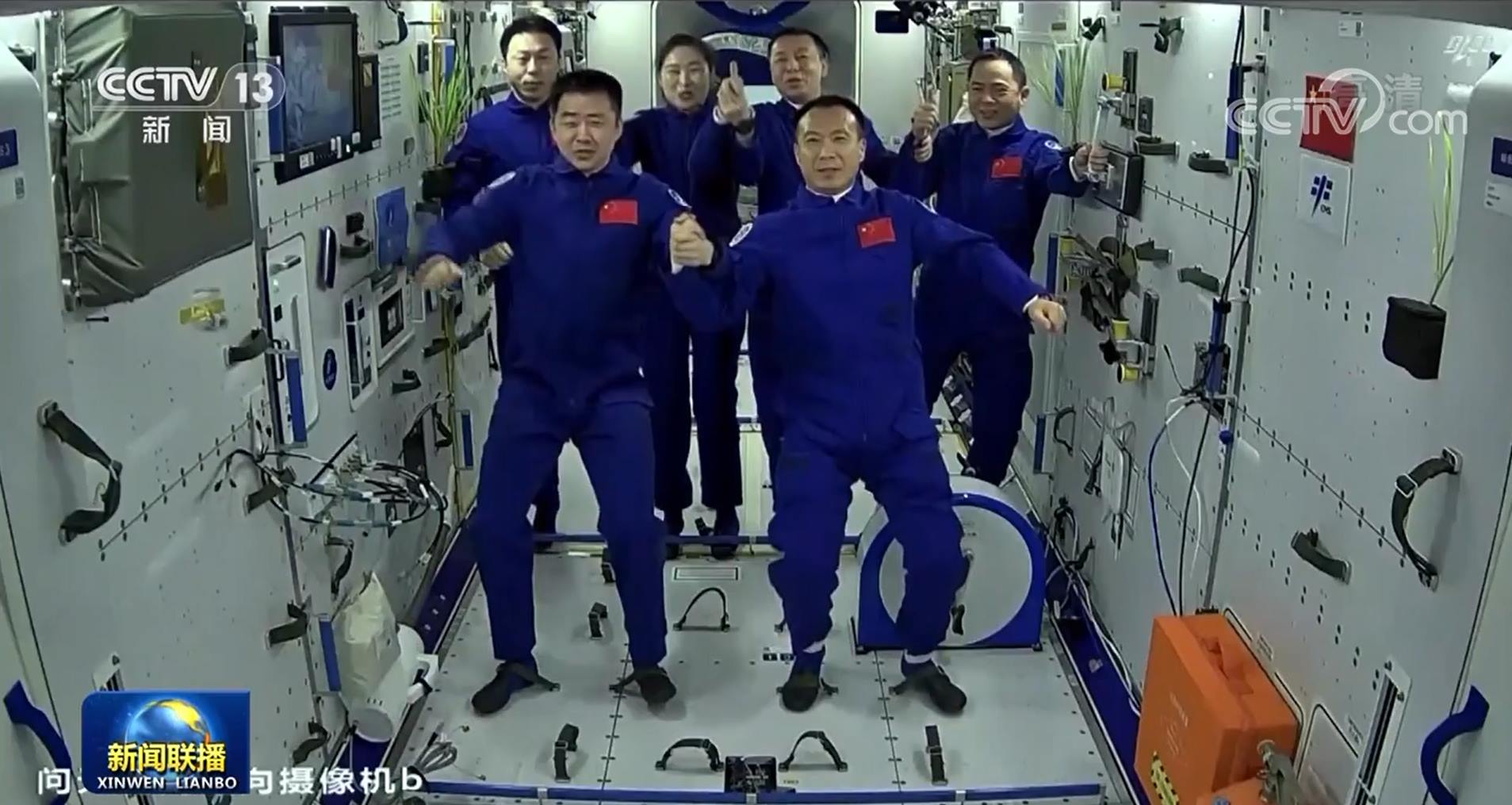 神十四和神十五兩個航天員乘組首次在空間站進(jìn)行在軌輪換,6名航天員首次在中國的“太空家園”留下這張?zhí)蘸嫌啊?/p>