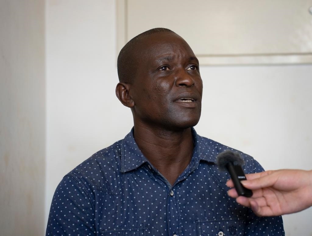 59歲的羅杰·恩吉奇瑪是當?shù)匾幻珓?wù)員。因長期肩頸、后背勞損前來接受中醫(yī)針灸,這已是他的第五次治療。
