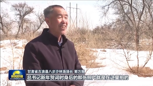 甘肅省古浪縣八步沙林場(chǎng)場(chǎng)長(zhǎng) 郭萬(wàn)剛:總書記新年賀詞時(shí)身后的那張照片就是在這里拍的,他叮囑我們要把身體保護(hù)好才能把沙治好,把日子過(guò)好,治沙就是為了更好的生活。