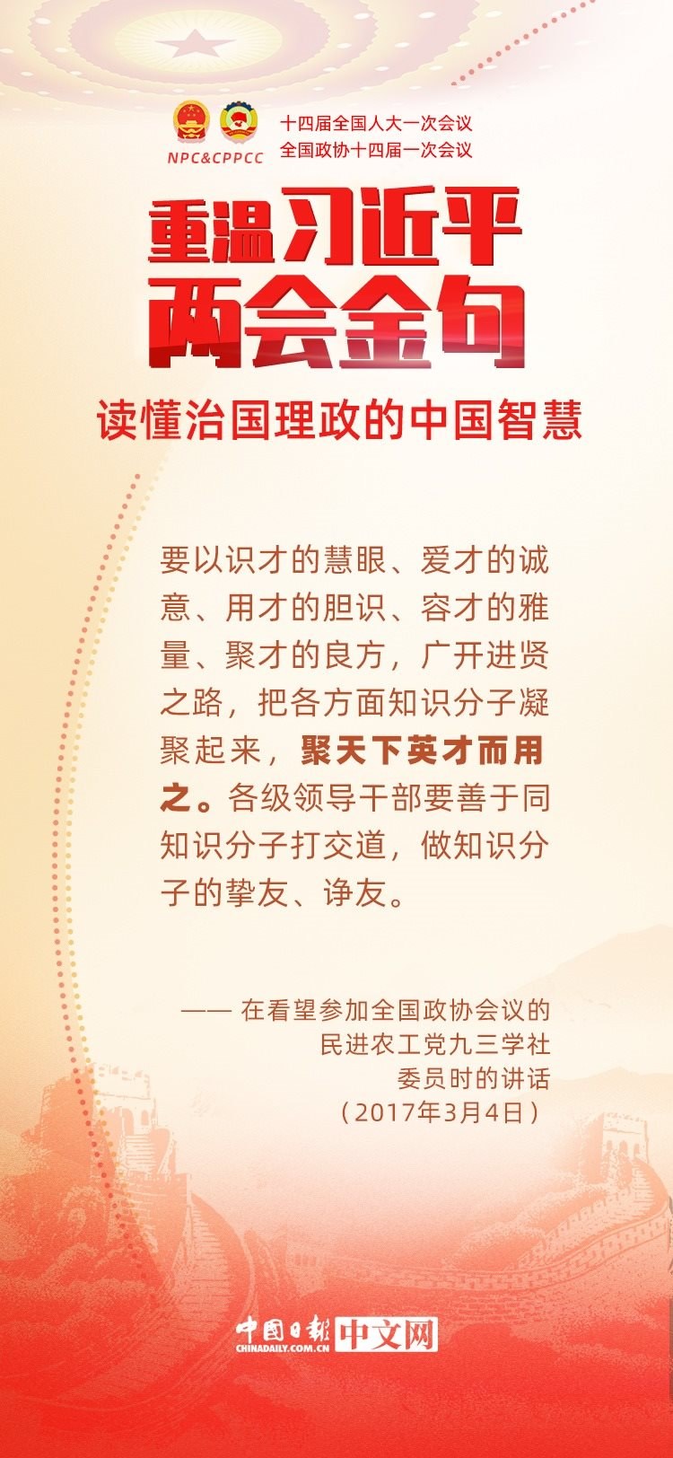 黨的十八大以來(lái),每年兩會(huì)期間,習(xí)近平總書記都要與代表委員共商國(guó)是。十年來(lái),在一系列重要論述中,習(xí)近平總書記使用詩(shī)詞、古語(yǔ)等典故,把中華優(yōu)秀傳統(tǒng)文化融入治國(guó)理政的理論和實(shí)踐中。