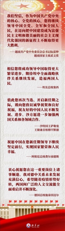 多國領(lǐng)導人在賀電賀函中表達他們對習近平全票當選的祝賀與敬佩之情。