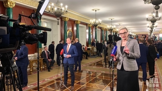 當(dāng)天上午,在前往克里姆林宮之前,習(xí)主席在俄羅斯聯(lián)邦政府大廈會(huì)見了俄羅斯總理米舒斯京。米舒斯京總理率俄羅斯政府幾乎所有重要內(nèi)閣成員一起同習(xí)主席會(huì)見,其中包括俄羅斯聯(lián)邦政府7位副總理,他們對(duì)習(xí)主席的訪問表示熱烈歡迎。