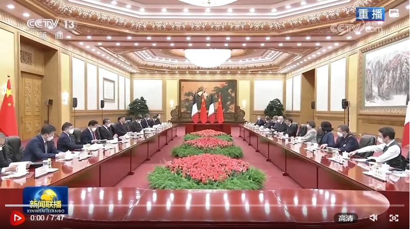 馬克龍表示,我對(duì)3年多前訪華情景記憶猶新,非常高興再次訪華,同習(xí)近平主席共同探討進(jìn)一步提升法中全面戰(zhàn)略伙伴關(guān)系。我完全贊同習(xí)近平主席對(duì)法中關(guān)系的積極評(píng)價(jià)以及就發(fā)展雙邊關(guān)系提出的重要建議。明年法中將共同慶祝建交60周年。60年來(lái),法中關(guān)系保持了穩(wěn)定健康發(fā)展。雖然法中兩國(guó)發(fā)展模式不同,但雙方相互尊重,坦誠(chéng)交流,各領(lǐng)域合作實(shí)現(xiàn)了互利互惠,同時(shí)在合作應(yīng)對(duì)當(dāng)今世界面臨的全球性挑戰(zhàn)方面取得重要進(jìn)展。法方尊重并奉行一個(gè)中國(guó)政策。我此次率龐大代表團(tuán)訪華,就是希望同中方加強(qiáng)合作,促進(jìn)人文交流。法方祝賀中方成功舉辦昆明-蒙特利爾《生物多樣性公約》第十五次締約方大會(huì),希望繼續(xù)在氣候變化、糧食安全等問(wèn)題上同中方密切溝通合作。中方將舉辦第三屆“一帶一路”國(guó)際合作高峰論壇,法方愿同中方就此開展合作。法方贊賞中方始終遵守聯(lián)合國(guó)憲章宗旨,為解決國(guó)際地區(qū)熱點(diǎn)問(wèn)題發(fā)揮積極作用,期待同中方密切溝通協(xié)作,努力實(shí)現(xiàn)世界的持久和平與穩(wěn)定。