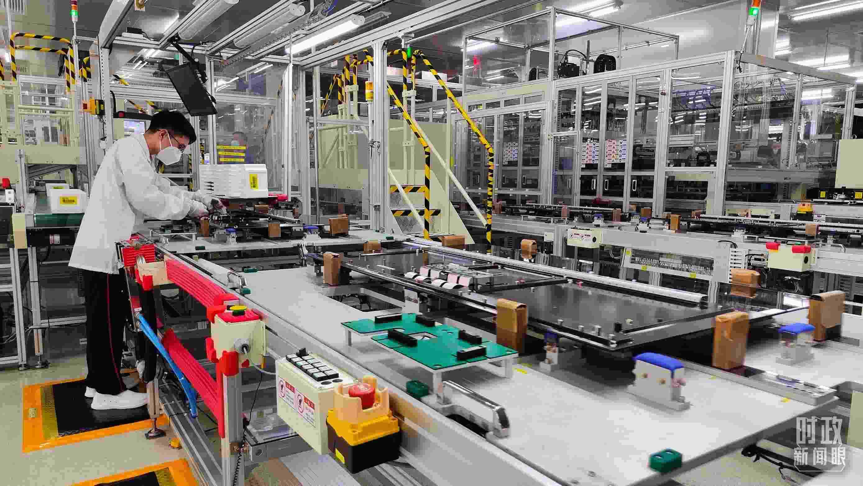 △顯示面板背面組裝生產(chǎn)線。(總臺央視記者楊立峰拍攝)