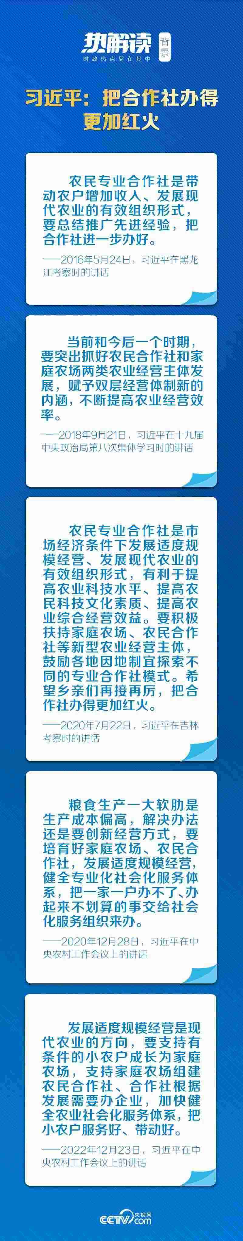 合作社是市場經(jīng)濟條件下發(fā)展適度規(guī)模經(jīng)營和現(xiàn)代農(nóng)業(yè)的有效組織形式。黨的十八大以來,總書記不止一次走進(jìn)合作社,關(guān)切農(nóng)業(yè)、農(nóng)村發(fā)展,思考中國特色的農(nóng)業(yè)現(xiàn)代化之路。