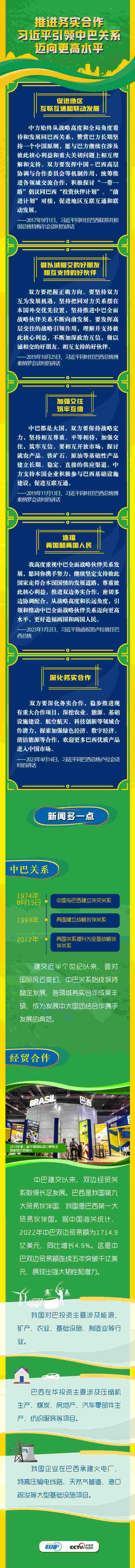 中國和巴西分別是東西半球最大的發(fā)展中國家和重要新興市場國家,互為全面戰(zhàn)略伙伴,擁有廣泛共同利益。習近平主席曾多次對中巴關系表達“聚焦共同發(fā)展,促進務實合作”的期望。央視網《聯播+》梳理相關內容,與您一起學習。