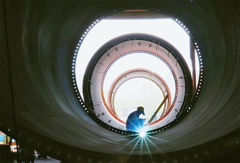 2023年一季度,我國國內生產(chǎn)總值同比增長4.5%,國民經(jīng)濟開局良好,為實現(xiàn)全年發(fā)展目標奠定了基礎,注入了信心。圖為2023年4月18日,工人在江蘇連云港經(jīng)濟技術開發(fā)區(qū)一家公司內加工組裝風電塔筒。 中新社發(fā) 耿玉和/攝