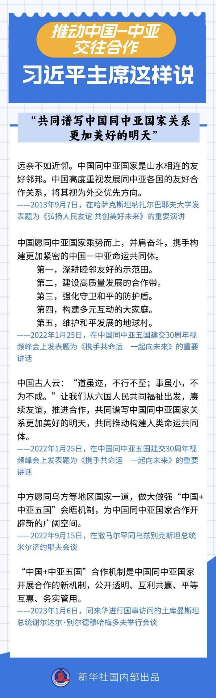 過去十年間,習(xí)近平主席同中亞五國(guó)領(lǐng)導(dǎo)人保持密切互動(dòng),引領(lǐng)中國(guó)同中亞國(guó)家政治互信不斷深化,務(wù)實(shí)合作提質(zhì)升級(jí),國(guó)際協(xié)作走深走實(shí)。關(guān)于中國(guó)-中亞交往合作,習(xí)近平主席作出過哪些重要論述?一起來看——