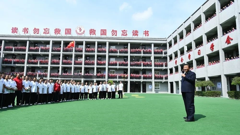2021年9月14日,在陜西榆林市綏德實(shí)驗(yàn)中學(xué)考察時(shí),習(xí)近平總書記走進(jìn)教室、操場(chǎng),觀看同學(xué)們書法練習(xí)和體育鍛煉,同大家親切交流。他勉勵(lì)同學(xué)們:“真正做全面發(fā)展的人才,一步一步地走下去,最終都能成為對(duì)社會(huì)有用的人、國(guó)之棟梁?!薄暗轮求w美勞全面發(fā)展,字字千金,都是經(jīng)過(guò)多年總結(jié)摸索才得出來(lái)的?!?/p>