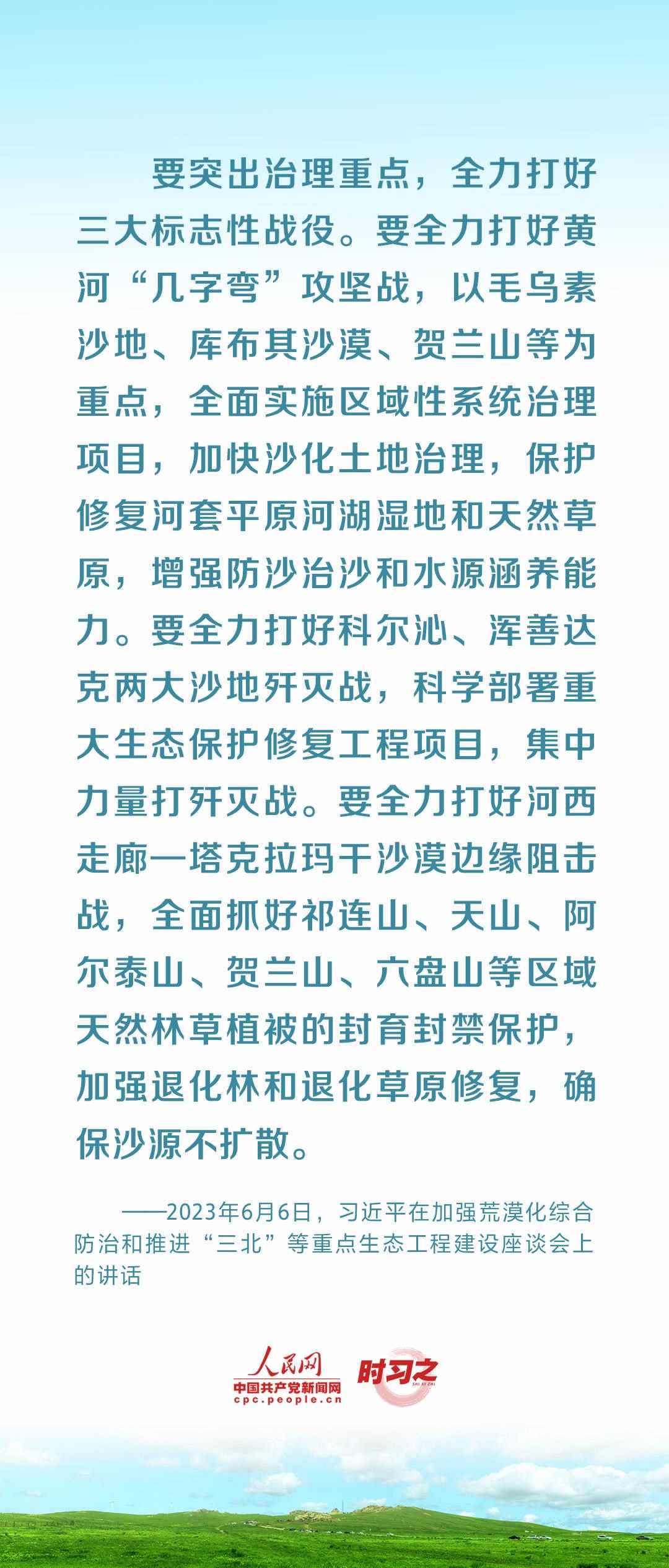 2023年6月5日至6日,中共中央總書記、國家主席、中央軍委主席習(xí)近平在內(nèi)蒙古自治區(qū)巴彥淖爾市考察,主持召開加強(qiáng)荒漠化綜合防治和推進(jìn)“三北”等重點(diǎn)生態(tài)工程建設(shè)座談會(huì)并發(fā)表重要講話。座談會(huì)上,習(xí)近平對(duì)走好中國特色防沙治沙道路提出工作要求。