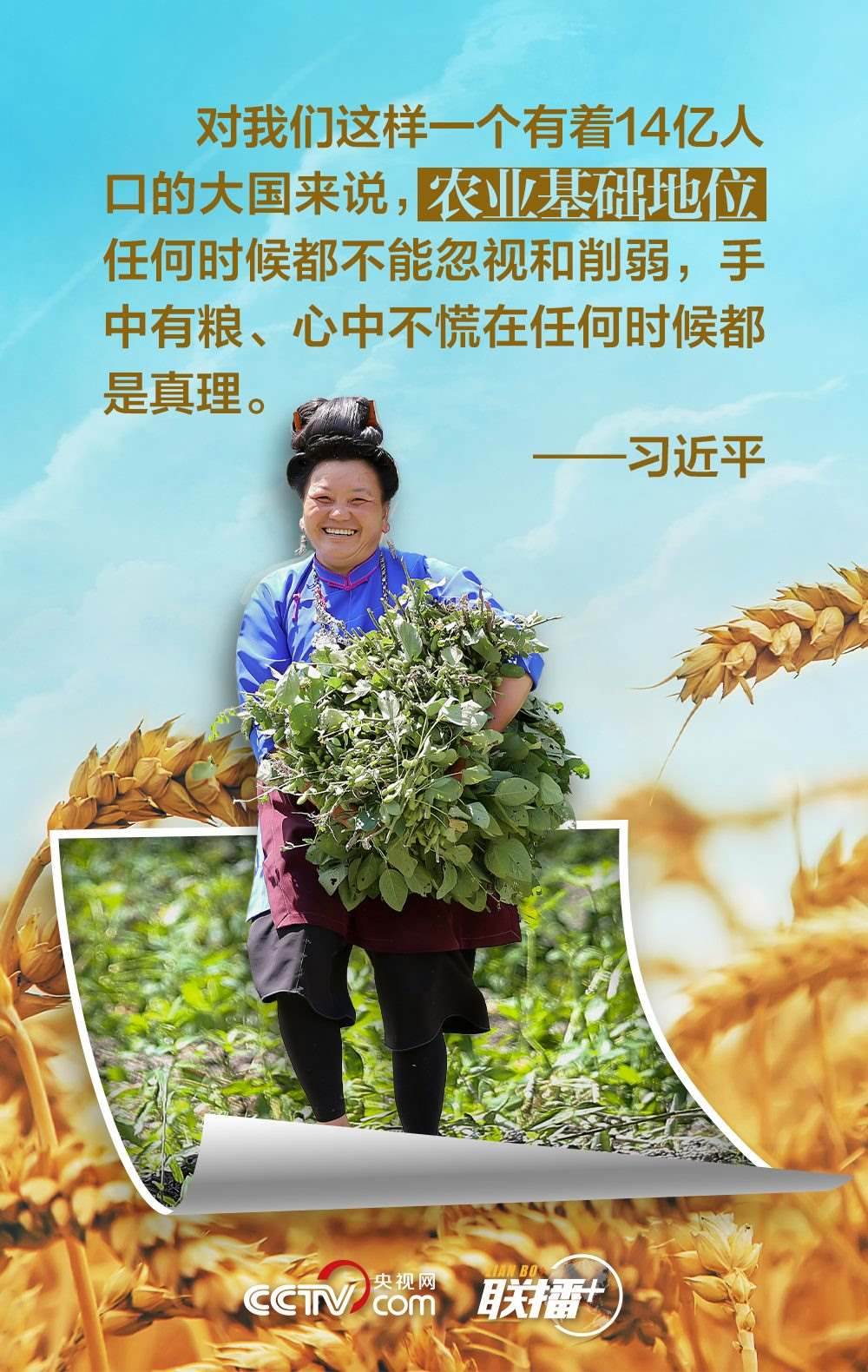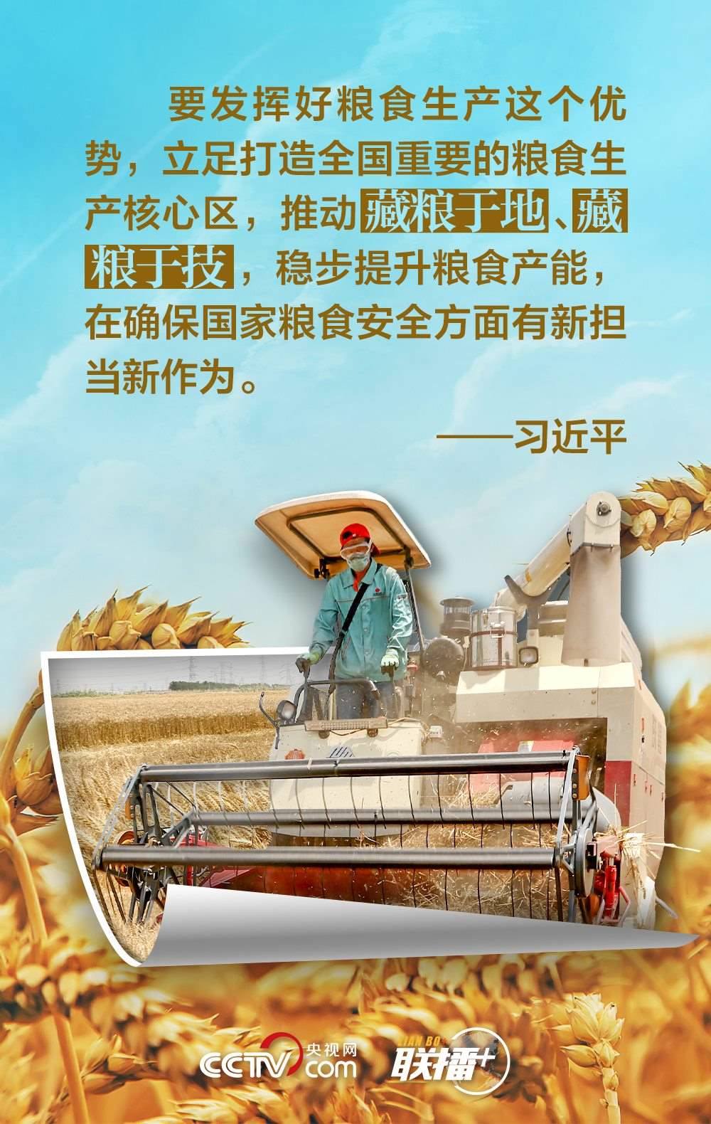 夏糧是全年糧食生產(chǎn)的第一季,約占我國全年糧食產(chǎn)量的五分之一,主要包括夏收的谷物、豆類和薯類等。“手中有糧,心中不慌?!绷暯娇倳浭种匾暭Z食安全,他強調(diào),中國人的飯碗任何時候都要牢牢端在自己手中,飯碗主要裝中國糧。值此夏收時節(jié),央視網(wǎng)《聯(lián)播+》與您一起學習領(lǐng)悟總書記的糧食觀。